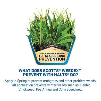 - Scotts® WeedEx™ Prevent with Halts® prevents crabgrass all season long