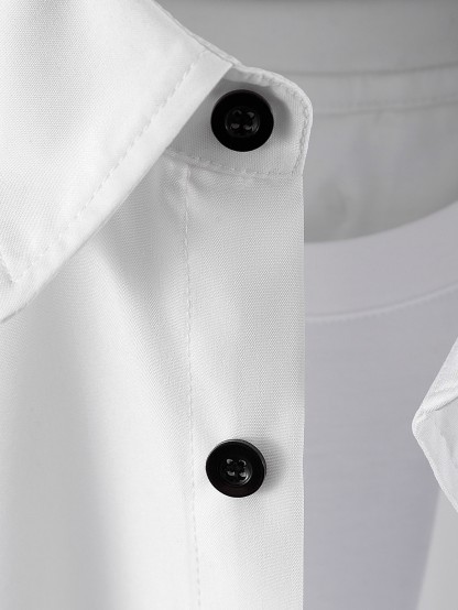 Men 1pc Solid Button Up Shirt