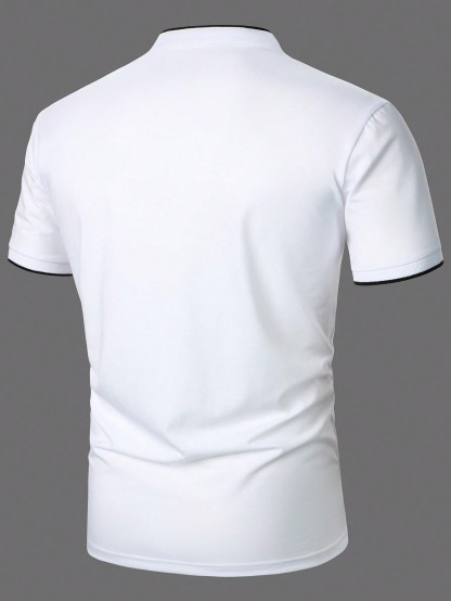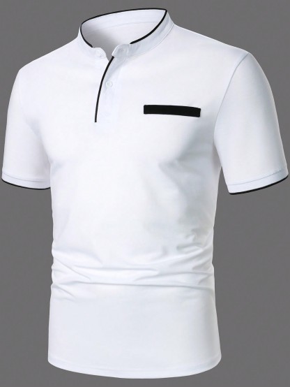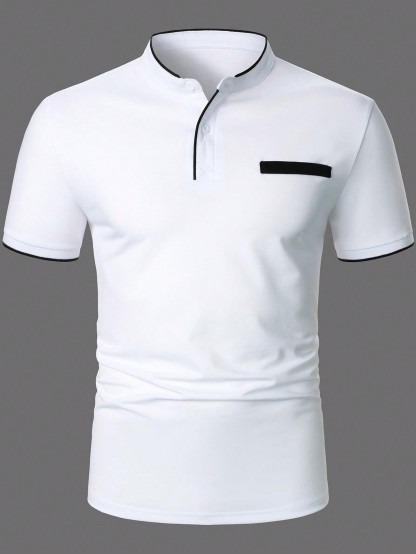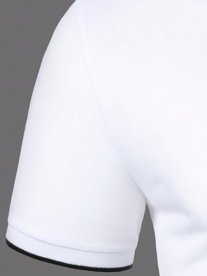Men Contrast Plaid Collar Polo Shirt