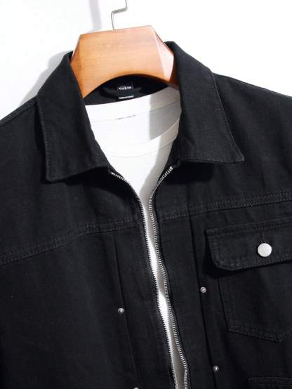 Men Flap Pocket Denim Jacket Without Tee