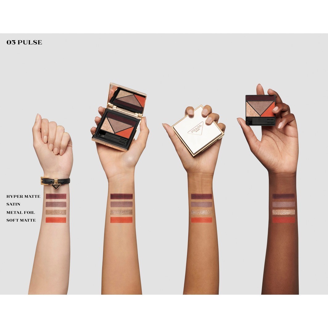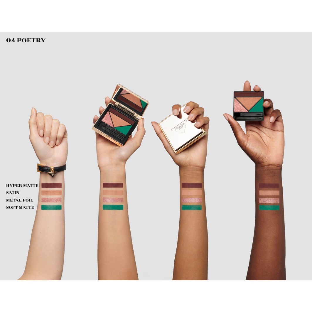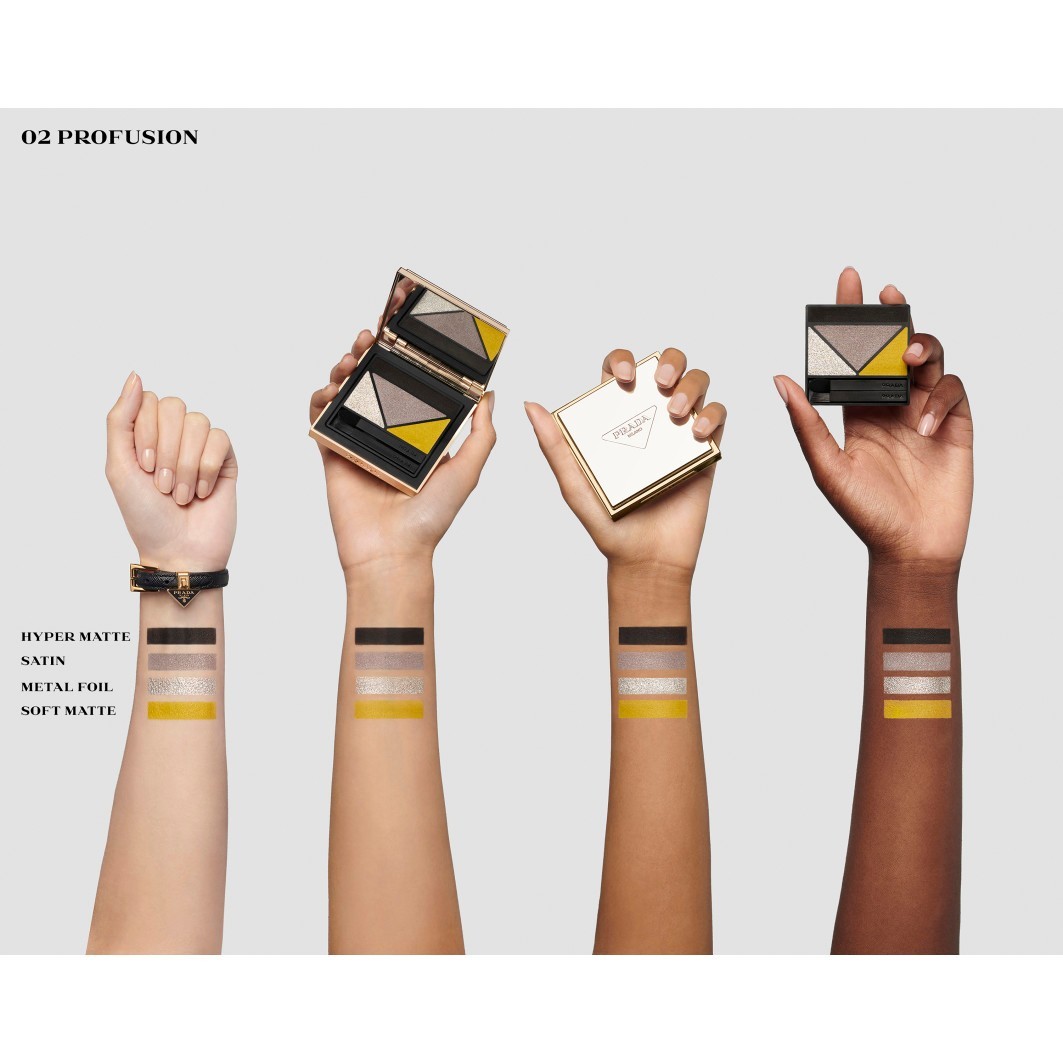 Beauty trifft Mode: Die Dimensions Durable Multi-Effect Eyeshadow Palette von Prada ist inspiriert von ikonischen Fashion-Prints aus dem Prada-Archiv. Vier perfekt aufeinander abgestimmte Lidschatten-Nuancen zaubern atemberaubende Looks mit vielseitigen Finishs. Sie lassen sich mit den Mini-Applikatoren ganz einfach auftragen und verblenden und bleiben bis zu 12 Stunden makellos. Angereichert mit Inka-Nussöl verwöhnen die Lidschatten das Augenlid mit einer Extraportion Pflege. Mit den Lidschatten-Refills kannst du deine Palette sogar immer wieder auffüllen. Ein Must-have für luxuriöse Augen-Make-up-Looks!