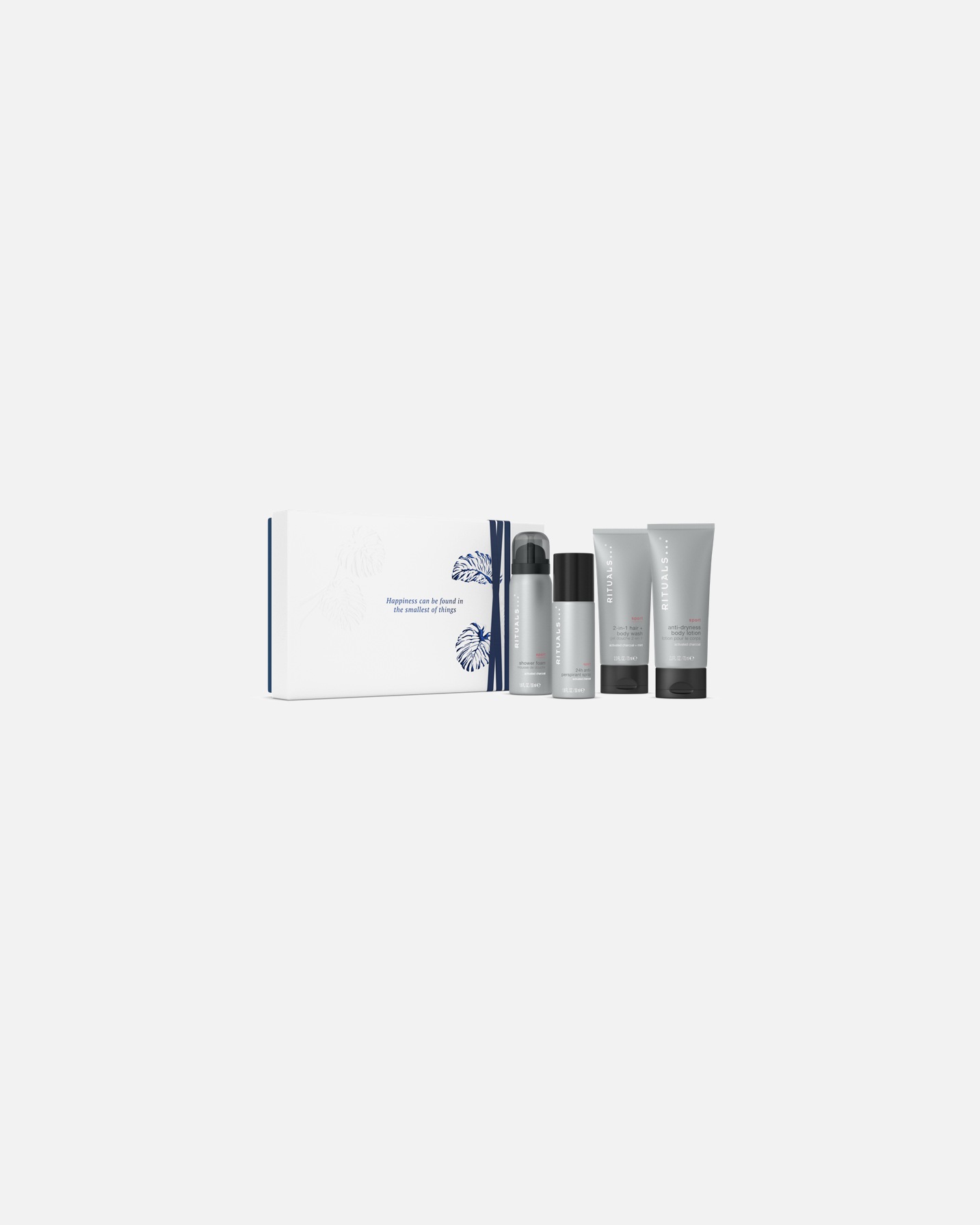 Für das Small Gift Set kommen vier Highlights aus der Sport Collection von Rituals, die mit japanischer Minze, Bambus und Zedernholz für einen erfrischten Start in den Tag sorgt. Der Shower Foam sorgt für eine erfrischende Reinigung, das 2-in-1 Shampoo & Body Wash mit Minze-Aktivkohle-Komplex reinigt nicht nur die Haut, sondern auch das Haar optimal. Die Anti-Dryness Body Lotion schenkt trockener Haut eine feuchtigkeitsspendende Pflege und verbessert mit ölabsorbierender Aktivkohle den Teint. Abgerundet wird die Pflegeroutine mit dem Anti-Perspirant Spray, das bis zu 24 Stunden lang einen effektiven Schutz vor Schweiß und Körpergeruch bietet. Die Box aus FSC-zertifiziertem Papier, in der sich das Quartett verbirgt, lässt sich bestens zur Aufbewahrung anderer Kostbarkeiten weiterverwenden.