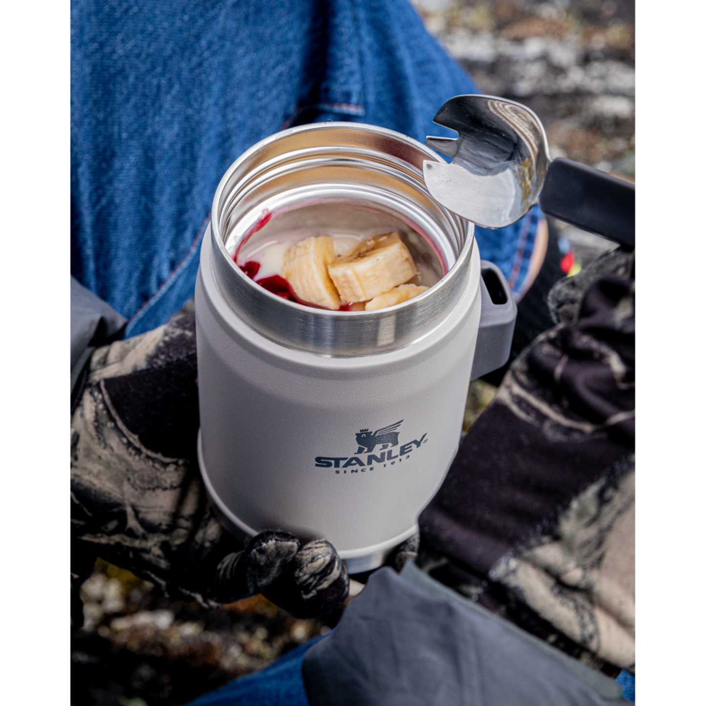 Der kompakte Lebensmittelbehälter von Stanley mit integriertem Göffel hält dein Essen 7 Stunden lang heiß bzw. kalt. Egal, ob du einen Berg besteigst, an einem Gletscher entlang Ski fährst oder einfach nur zur Mittagspause dein Essen aus der Tasche holst, dieser Behälter lässt dich nicht im Stich.Der auslaufsichere Deckel lässt sich dank des Druckablassventils ganz einfach öffnen, sodass du den Behälter in den Rucksack packen kannst, ohne dir Sorgen über ein Suppenmalheur machen zu müssen. Der breite Rand erleichtert das Befüllen, Ausgießen und Reinigen. Außerdem ist dieser Lebensmittelbehälter spülmaschinenfest, damit du nach einem ereignisreichen Tag eine Sorge weniger hast.