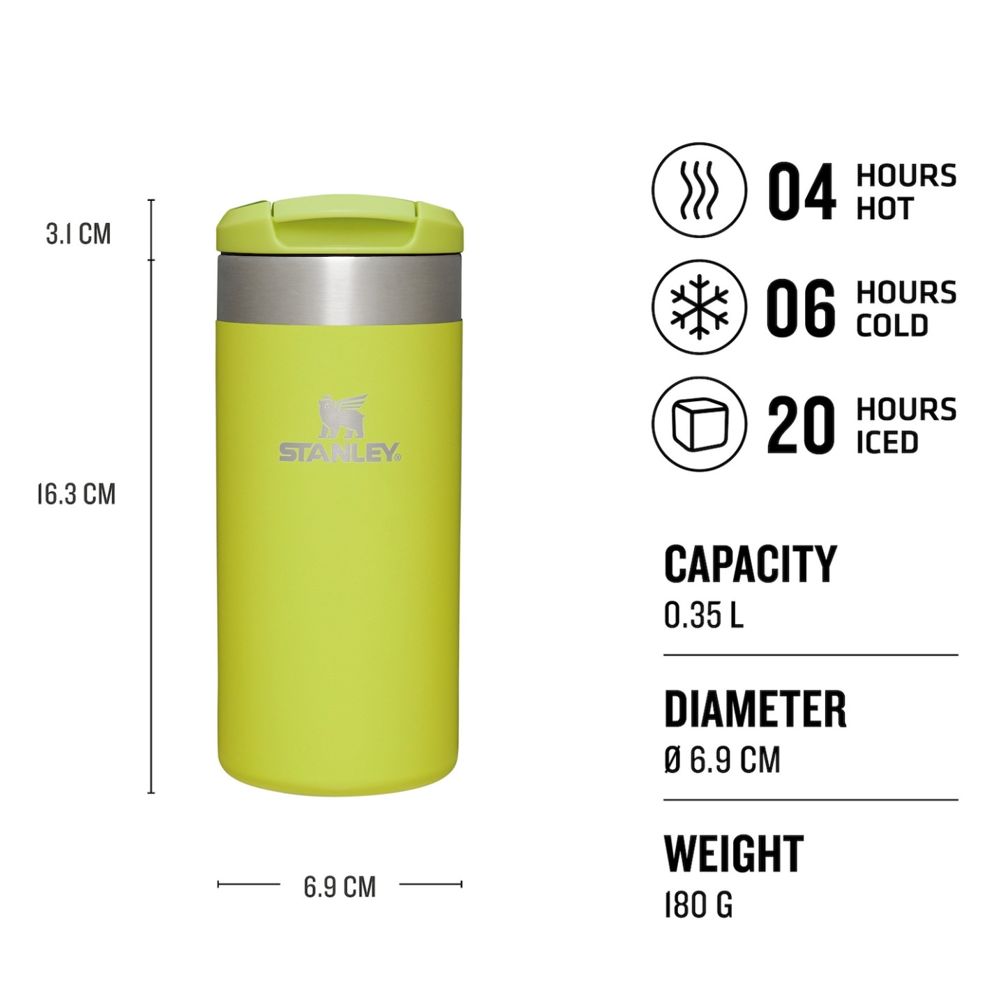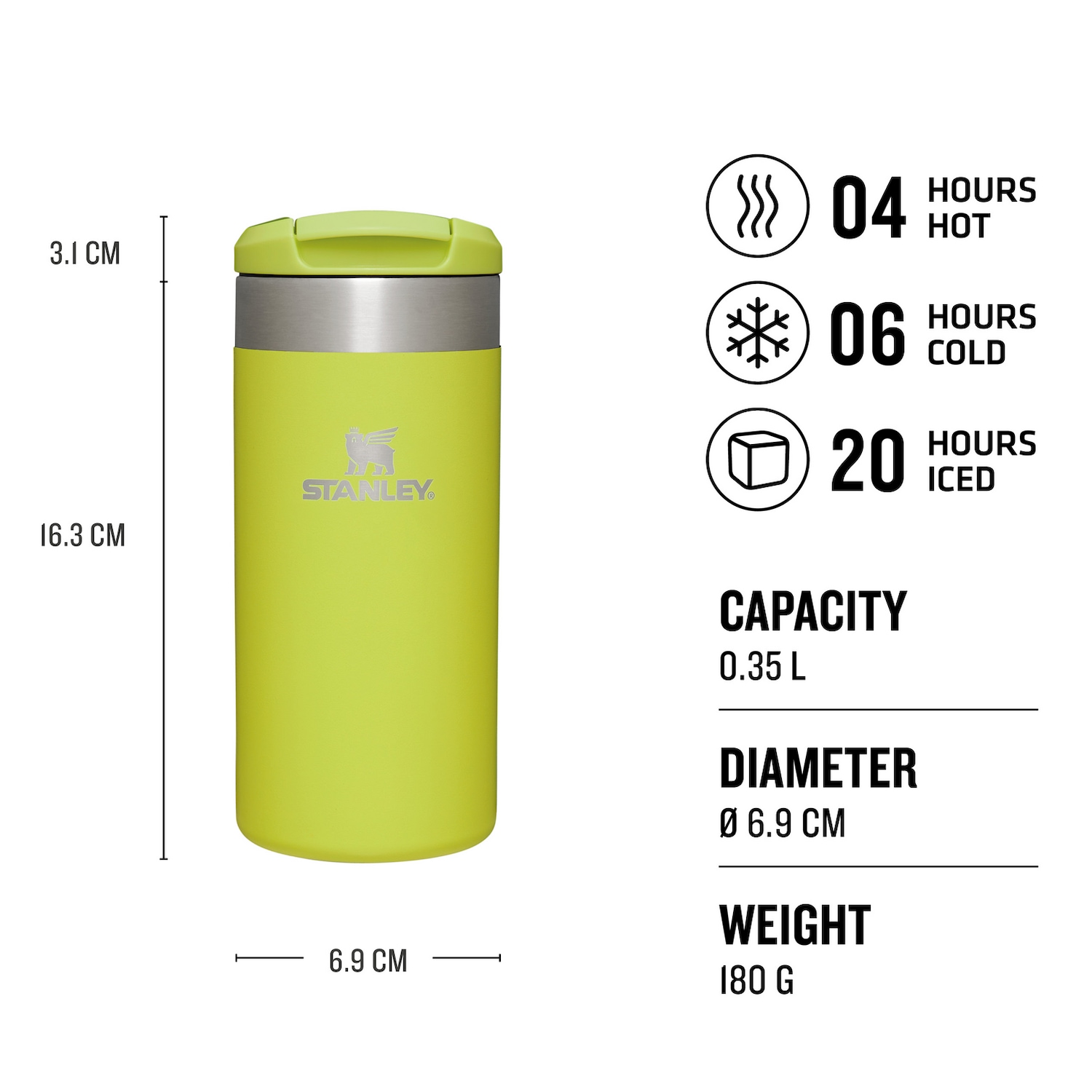 Die Lösung für Pendler und alle, die viel unterwegs sind. Der AeroLight™ Transit Mug ist Teil unserer Transit Collection und besticht nicht nur durch sein leichtes Design, sondern verhindert auch zuverlässig Temperaturverlust. Deine Getränke bleiben 4 Stunden lang heiß bzw. 6 Stunden lang kalt. Dieser Becher versorgt dich bei Wind und Wetter, ob auf dem Arbeitsweg oder bei einer Wanderung. Er ist zudem auslaufsicher und verfügt über eine verschließbare Trinköffnung. Du kannst den Becher für den Weg zur Arbeit oder zum Sport bedenkenlos in deine Tasche packen, ohne Angst zu haben, dass er ausläuft. Der AeroLight™ ist außerdem spülmaschinenfest, BPA-frei und lässt sich leicht reinigen. Unsere pendlerfreundlichen Transit-Becher sind 33 % leichter als die aus Edelstahl gefertigten Standardprodukte von Stanley.